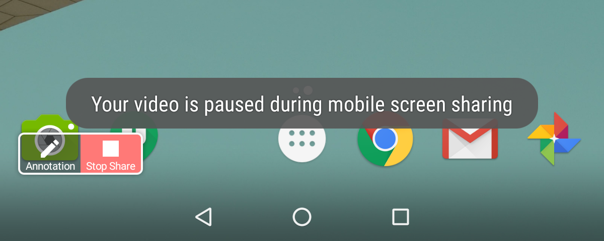1. Click anywhere on the video app window to make a menu appear at the bottom, and then click on the "Share Screen" icon.