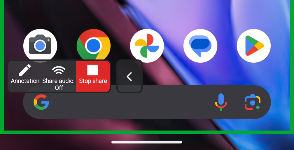 3a. If you select Screen, you'll see a prompt asking for permission to begin streaming your phone screen. Click "Start" to allow it.
