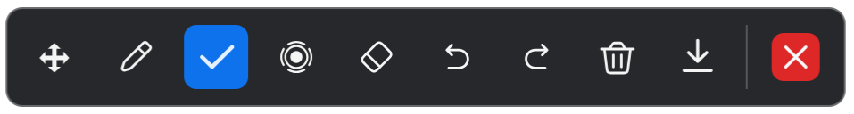 1. Tap on a tool to select it and begin using. (Tap on the pen icon on the left at any time to stop using tools and be able to tap on the screen on the screen normally.)